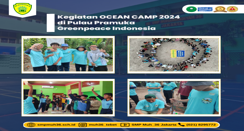 Greenpeace merupakan organisasi lingkungan yang berjuang melindungi masa depan bumi, manusia,d an keanekaragaman hayatinya. SMP Muhammadiyah 36 Jakarta berkesempatan mengirimkan 3 peserta didiknya yang terkumpul dalam kelompok ilmiah remaja untuk berlajar bersama Greenpeace dalam program Ocean Camp. Kegiatan ini terlaksana pada tanggal 14 dan 15 Desember 2024 bertempat di Pulau Pramuka, DKI Jakarta. Tujuan dari diadakannya kegiatan ini adalah untuk memberikan ruang belajar mengenai kondisi lingkungan dan cara melestarikannya dengan cara langsung melihat realita sebenarnya.